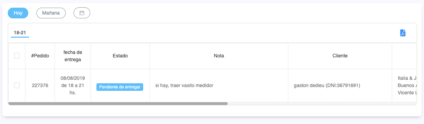 Ahora vas a ver los pedidos agrupados y ordenados según día y rangos horarios de entrega. Van a figurarte las franjas horarias en las que tenés pedidos para entregar. Podés minimizar o agrandar para ver los listados de pedidos: